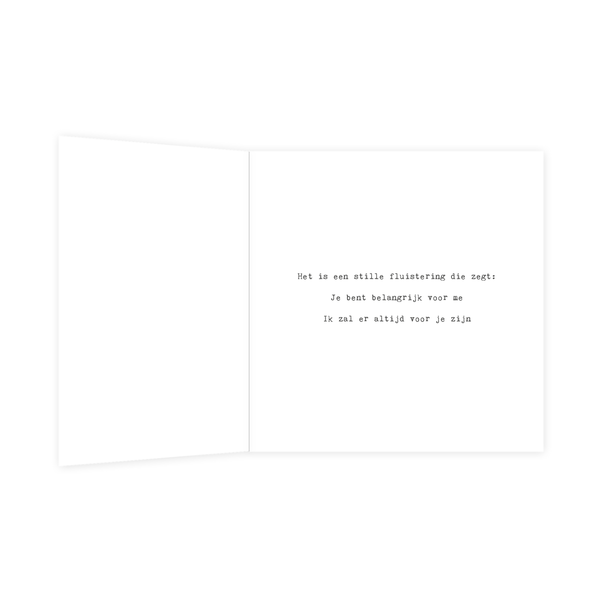 Al onze wenskaarten worden standaard geleverd inclusief bijpassende envelop. De envelop voor deze wenskaart heeft een witte kleur.