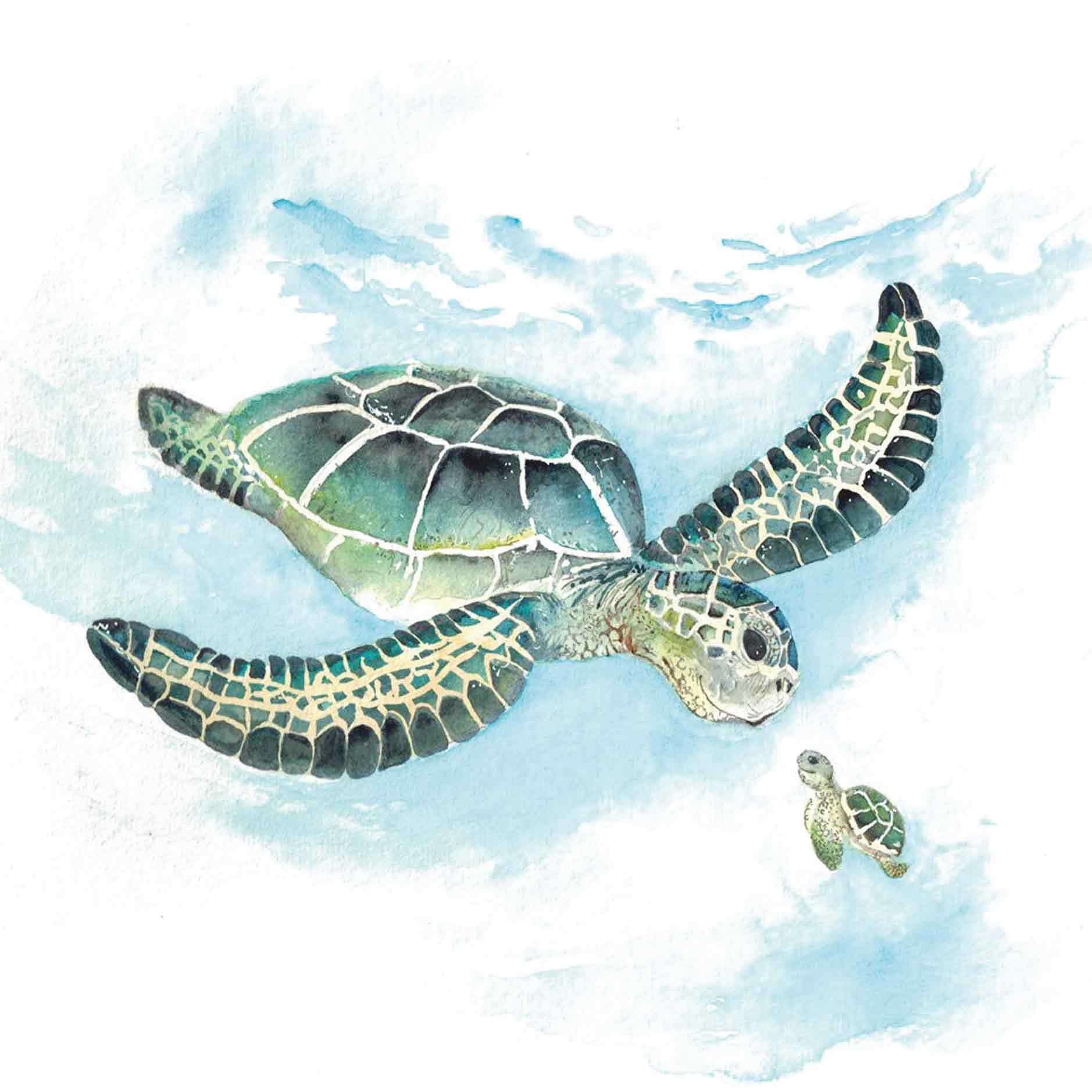 De wenskaart heeft een afmeting van x en een vierkante vorm. Op deze wenskaart staat een grote en een kleine schildpad die elkaar aankijken. De binnenzijde van de wenskaart is blanco wat voldoende ruimte geeft om een persoonlijke boodschap te schrijven .