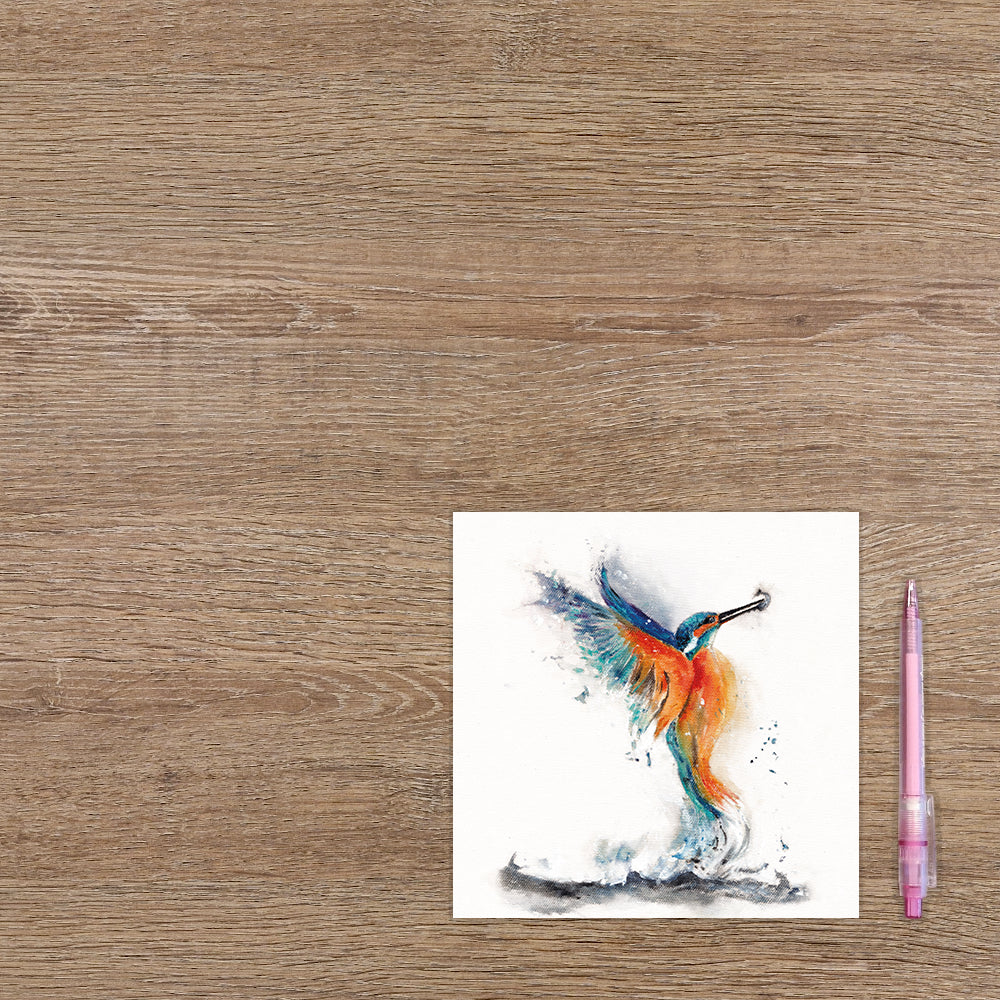 De wenskaart heeft een afmeting van x en een vierkante vorm. Op deze wenskaart staat een vogel die omhoog vliegt. De binnenzijde van de wenskaart is blanco wat voldoende ruimte geeft om een persoonlijke boodschap te schrijven .
