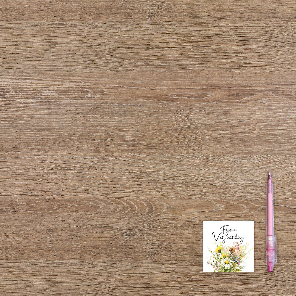 De wenskaart heeft een afmeting van x en een vierkante vorm. Op deze wenskaart staat een bloeket bloemen met daarboven de tekst: "Fijne verjaardag". De binnenzijde van de wenskaart is blanco wat voldoende ruimte geeft om een persoonlijke boodschap te schrijven .