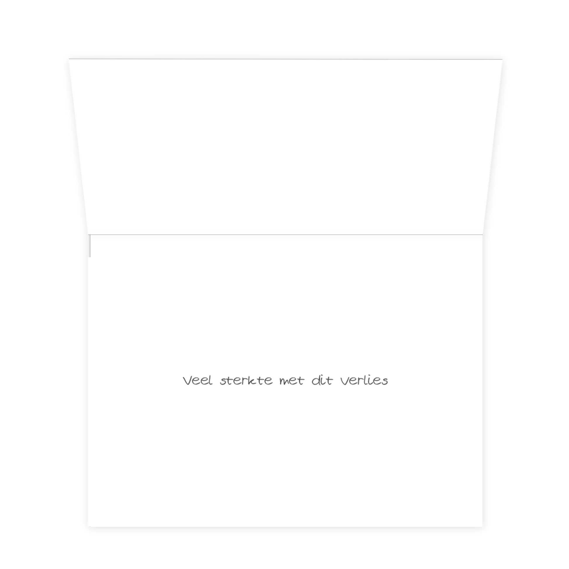 Deze kaart valt onder het type condoleance kaarten. Deze type kaarten zijn zeer geschikt om een collega of (zaken)relatie sterkte te wensen met het verlies van hun dierbare.