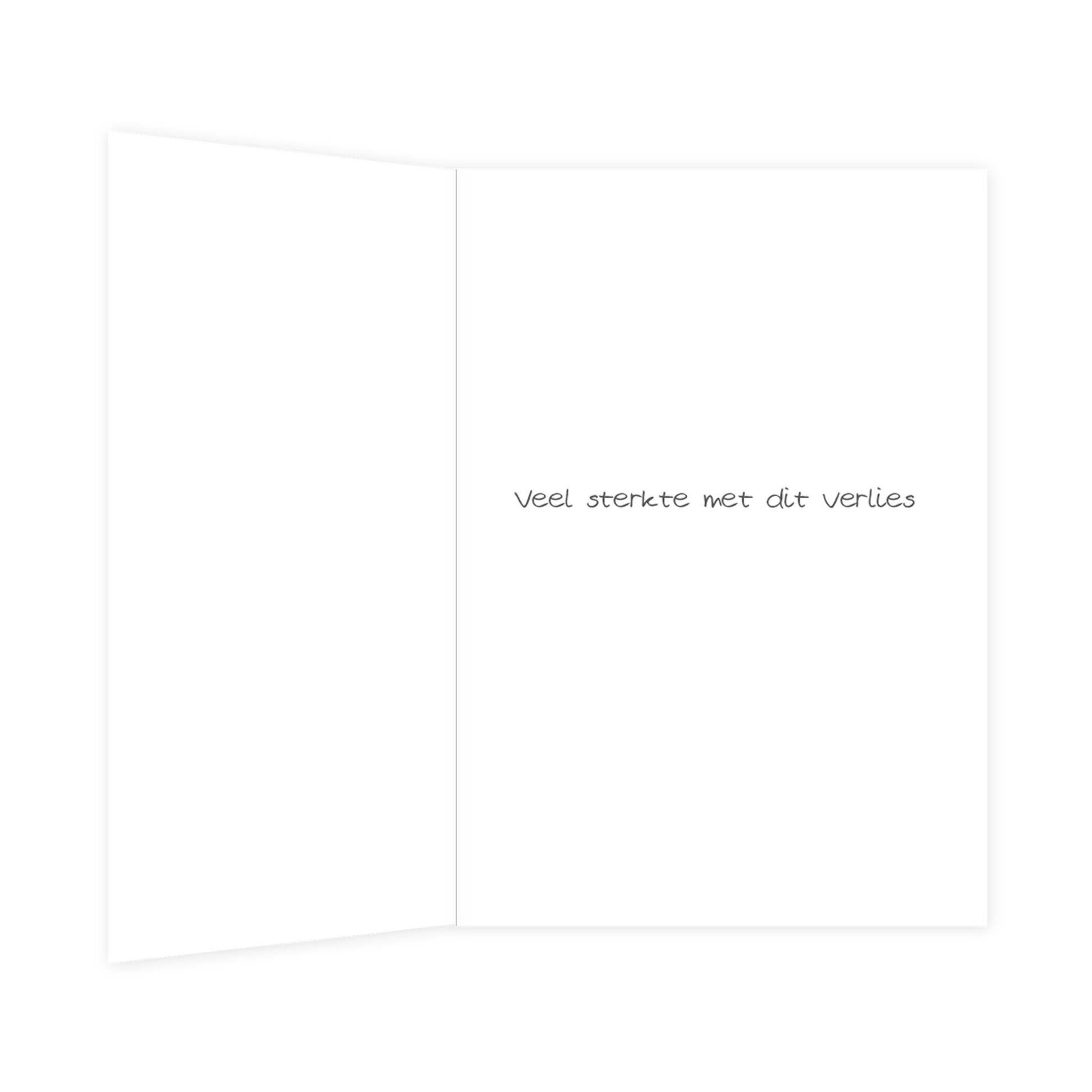 Deze kaart valt onder het type condoleance kaarten. Deze type kaarten zijn zeer geschikt om een collega of (zaken)relatie sterkte te wensen met het verlies van hun dierbare.