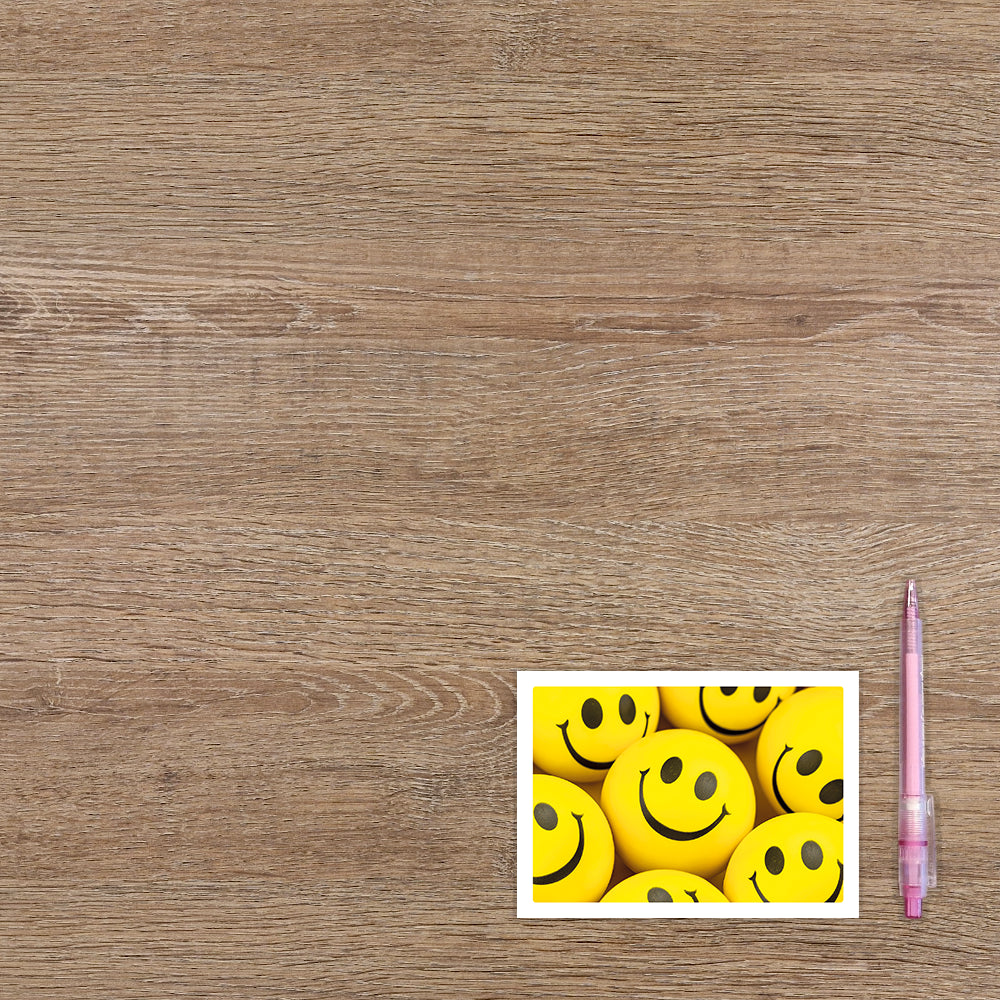 De wenskaart heeft een afmeting van x en een liggende vorm. Op deze wenskaart staan gele smileys. De binnenzijde van de wenskaart is blanco wat voldoende ruimte geeft om een persoonlijke boodschap te schrijven .