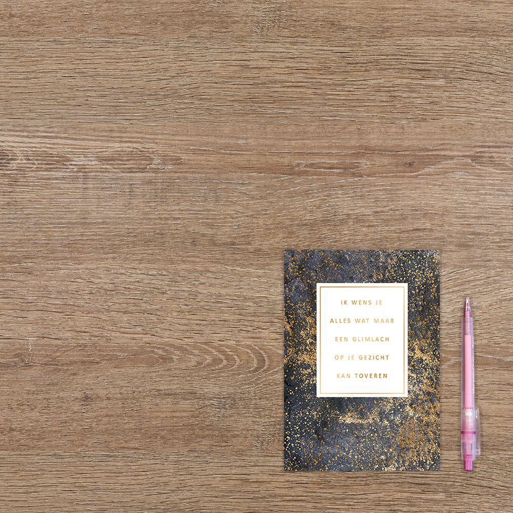 Al onze wenskaarten worden standaard geleverd inclusief bijpassende envelop. De envelop voor deze wenskaart heeft een gouden kleur.