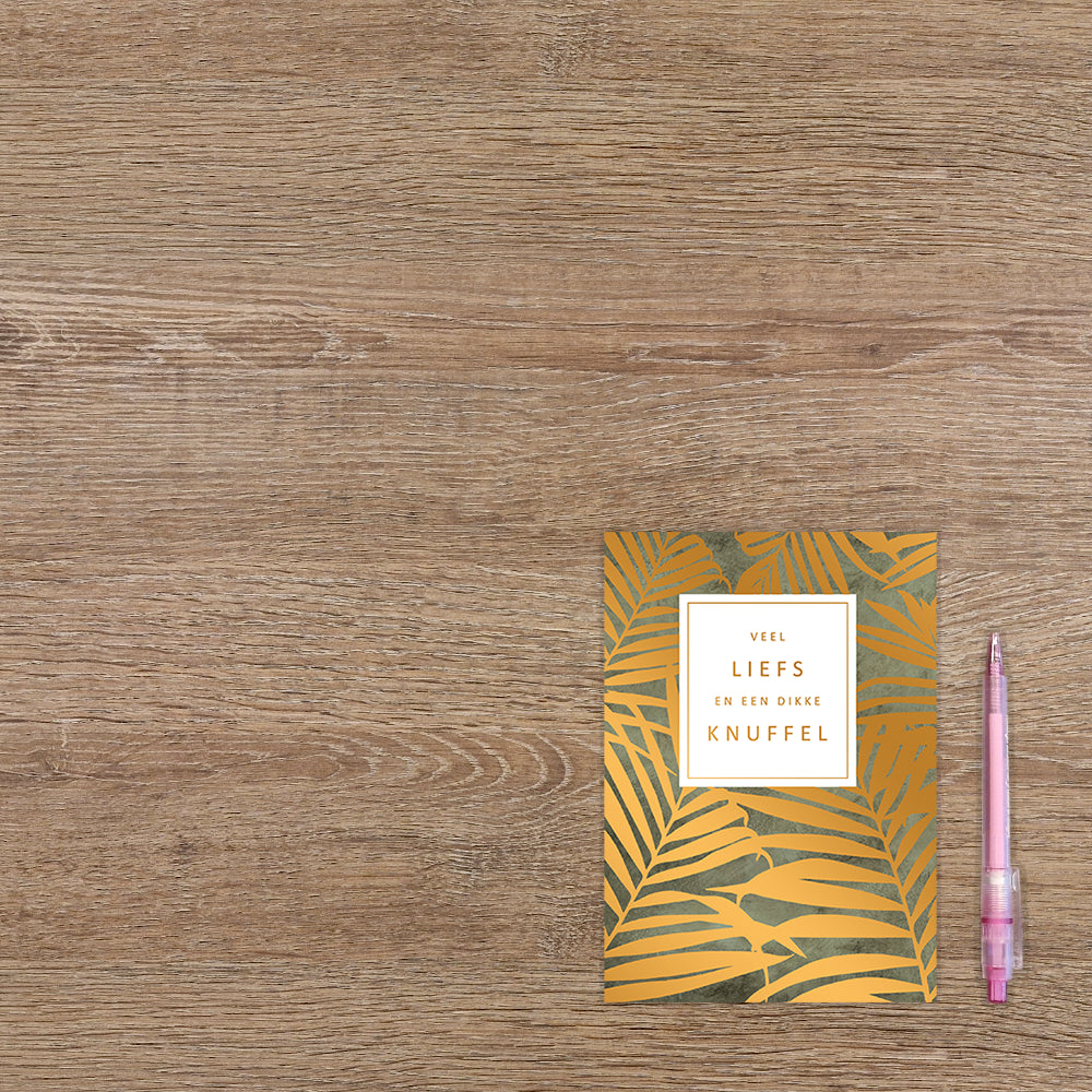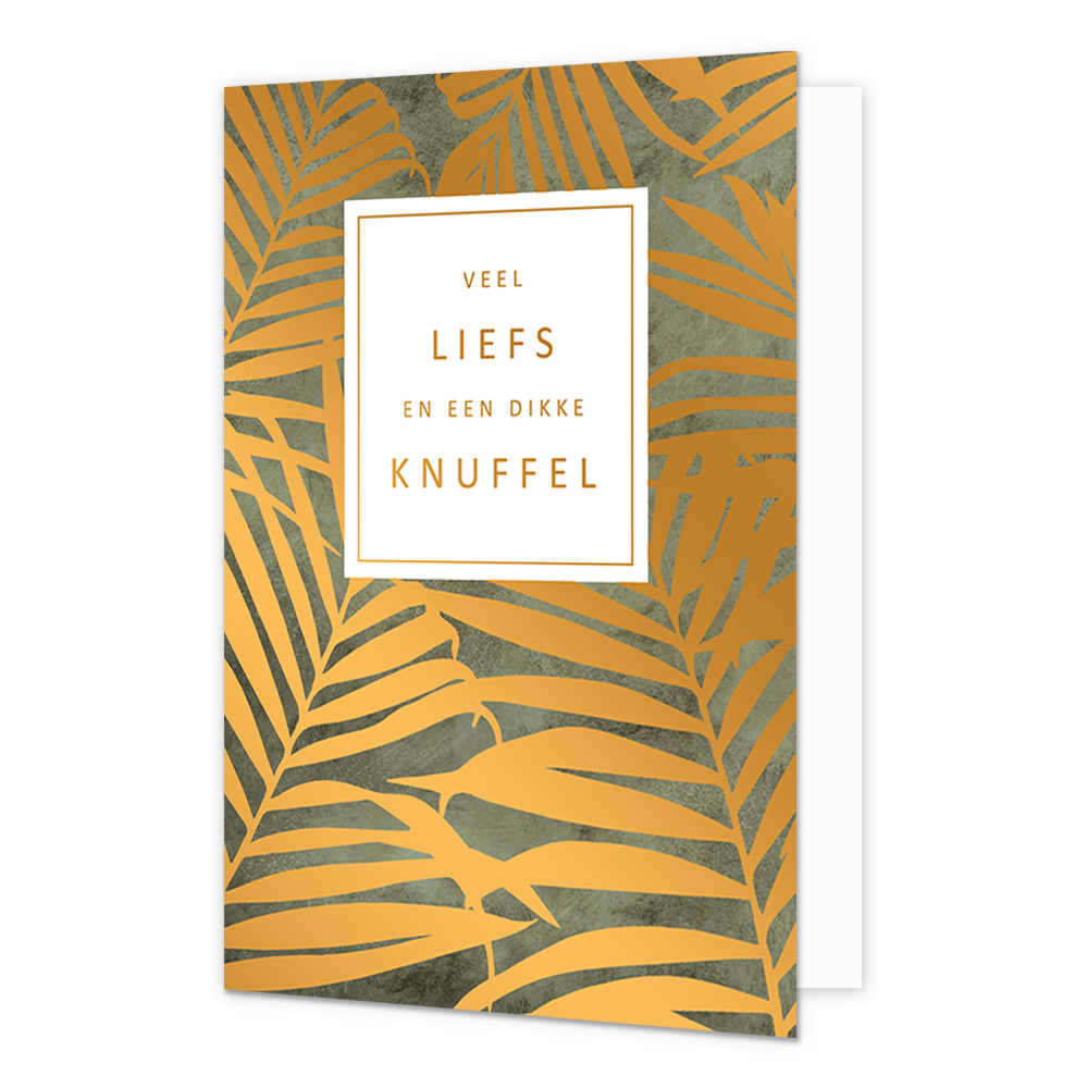 Al onze wenskaarten worden standaard geleverd inclusief bijpassende envelop. De envelop voor deze wenskaart heeft een gouden kleur.