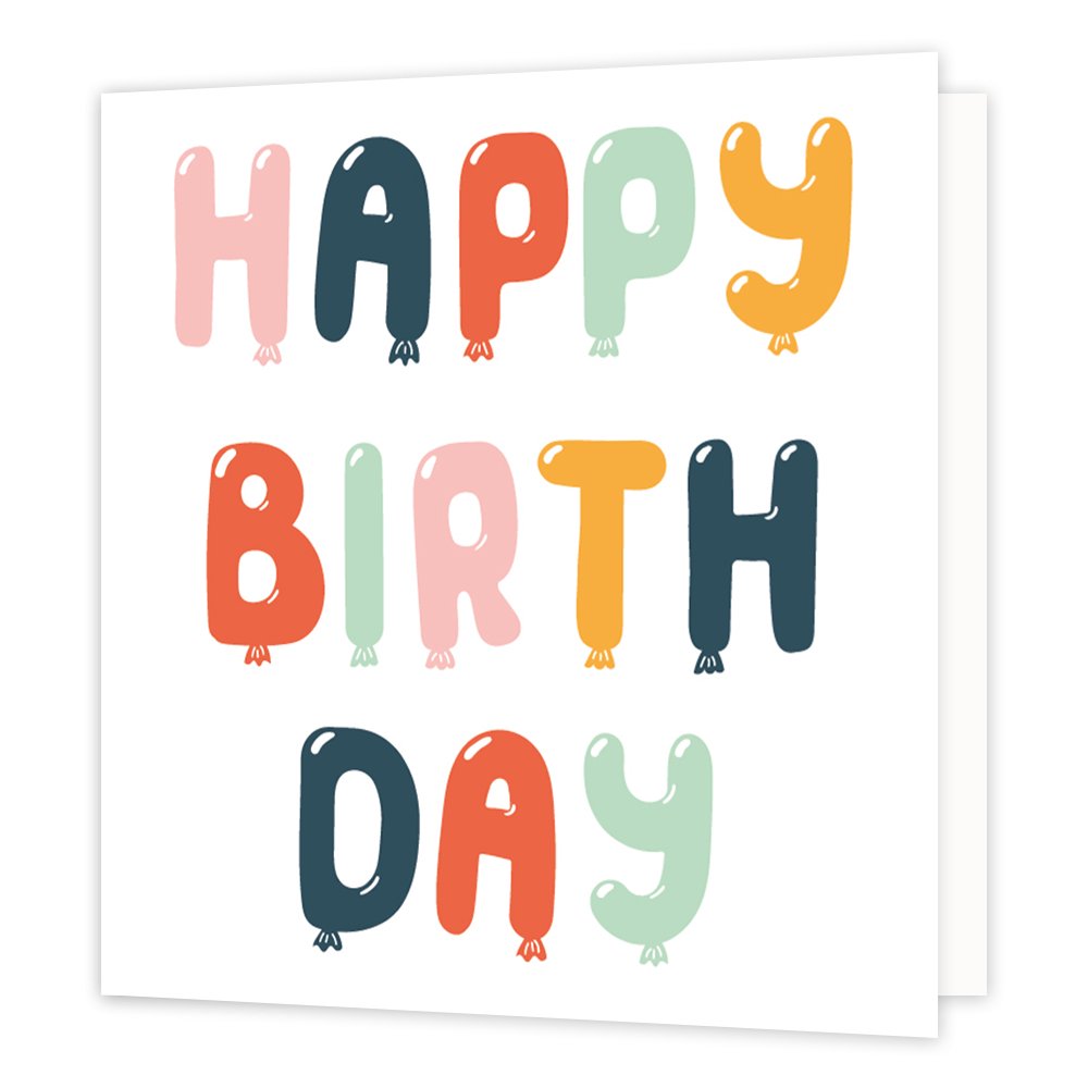 De wenskaart heeft een afmeting van x en een vierkante vorm. Op deze wenskaart staat de tekst: "Happy birthday". De binnenzijde van de wenskaart is blanco wat voldoende ruimte geeft om een persoonlijke boodschap te schrijven .
