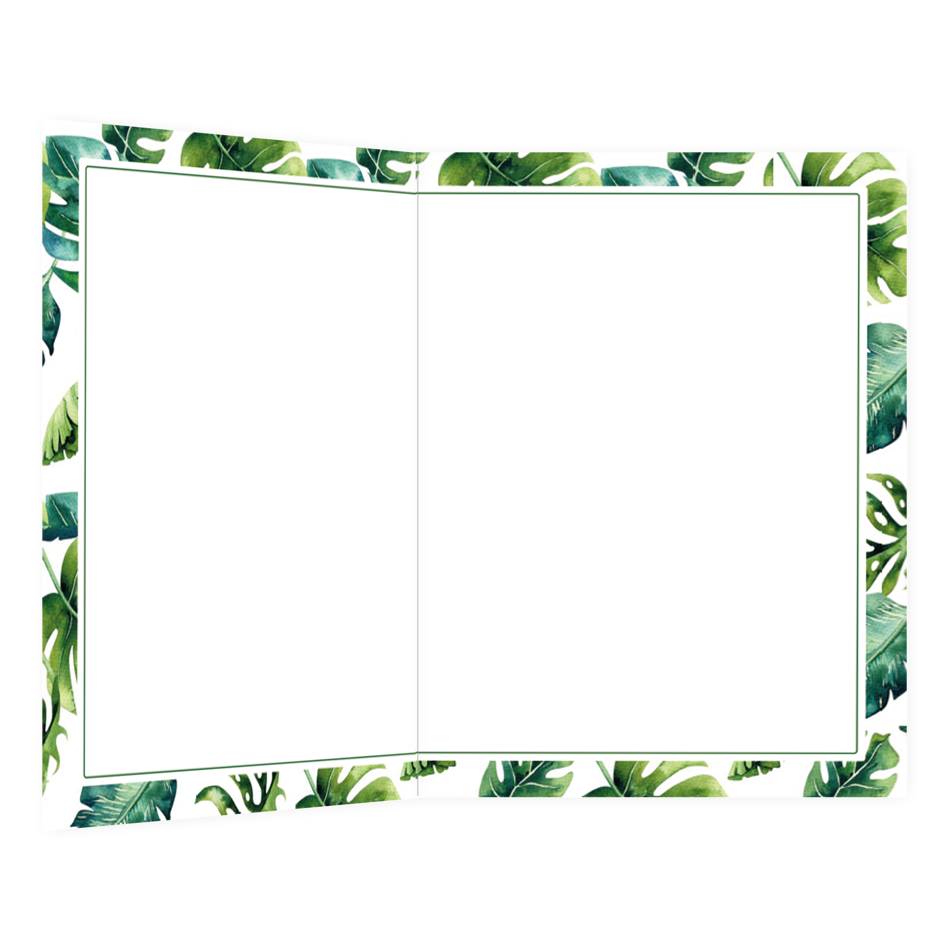 De wenskaart heeft een afmeting van x en een staande vorm. Op deze wenskaart staan groene bladeren met in het midden de tekst: "Bedankt voor je geweldige inzet". De binnenzijde van de wenskaart is bedrukt met een ontwerp passend bij de voorzijde van de kaart .