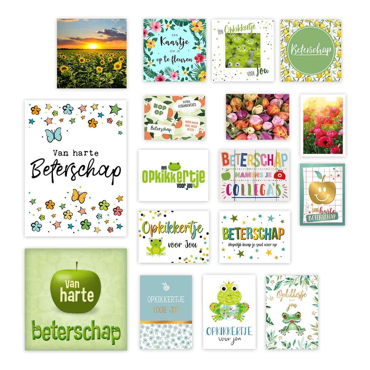 Wenskaartenset beterschap - 17 stuks