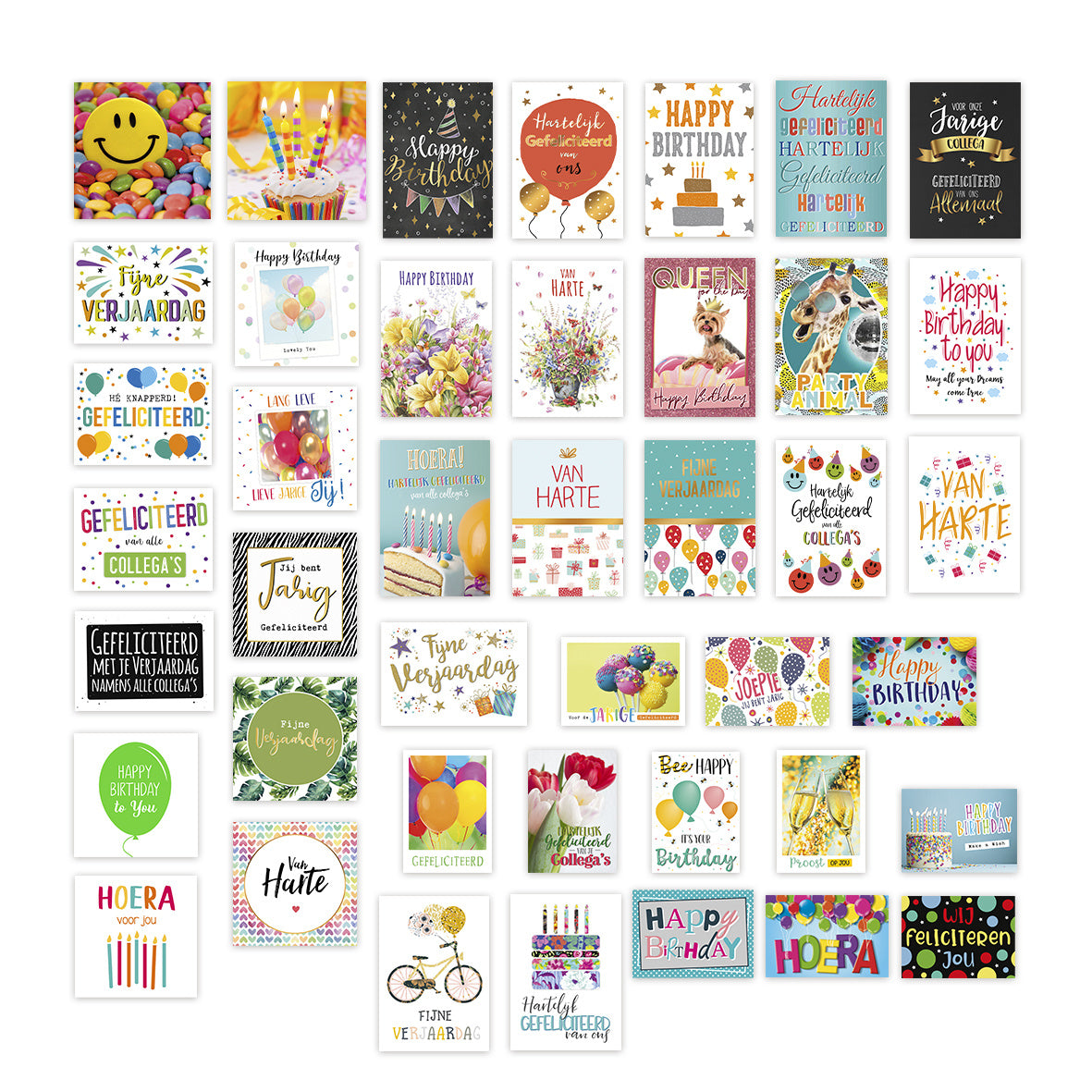 In deze wenskaartenset vind je 42 unieke wenskaarten, geschikt voor verjaardagen. Alle wenskaarten worden geleverd inclusief bijpassende envelop.