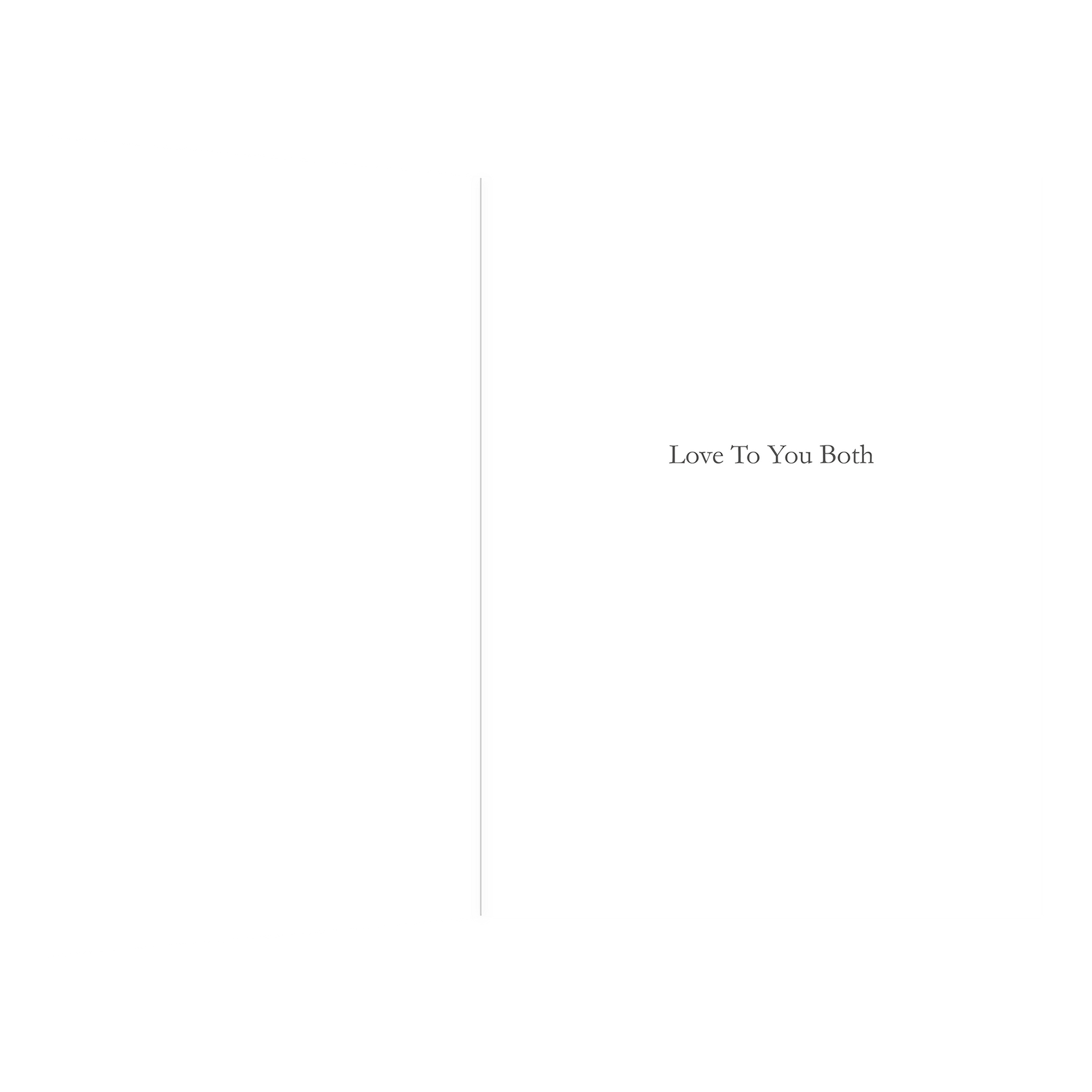 De wenskaart heeft een afmeting van x en een staande vorm. Op deze wenskaart staat de tekst: "Congratulations on your wedding day" omringt door hartjes confetti. De binnenzijde van de wenskaart is bedrukt met de tekst "Love to you both".