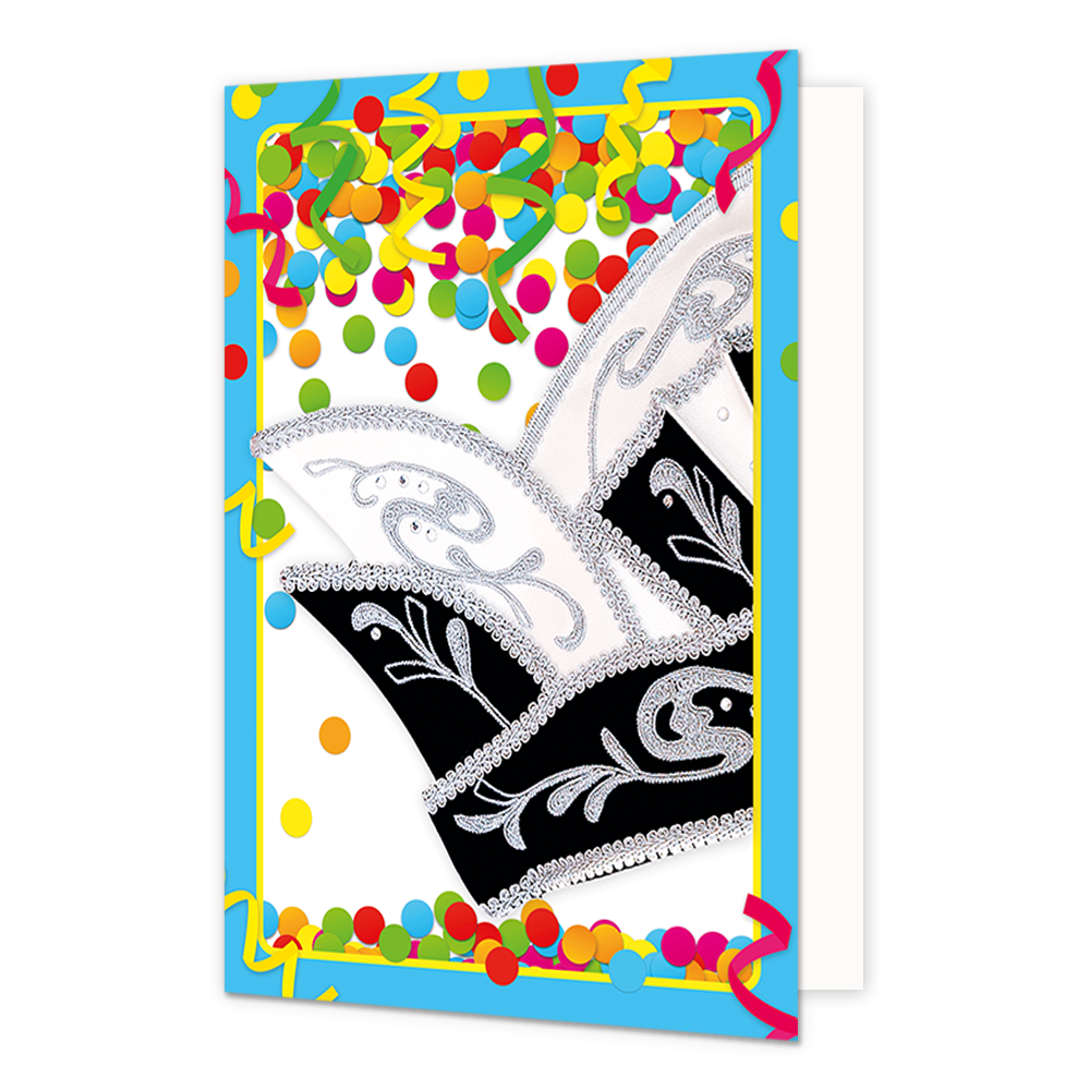 De wenskaart heeft een afmeting van x en een staande vorm. Op deze carnavalskaart staat een prinsensteek. De binnenzijde van de wenskaart is blanco wat voldoende ruimte geeft om een persoonlijke boodschap te schrijven .