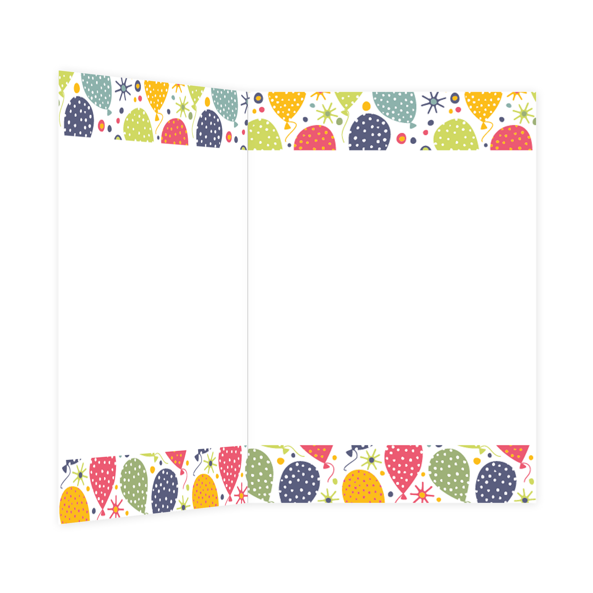 De wenskaart heeft een afmeting van x en een staande vorm. Op deze wenskaart staan gestippelde ballonnen met in het midden de tekst: "Wij feliciteren jou". De binnenzijde van de wenskaart is bedrukt met een ontwerp passend bij de voorzijde van de kaart .