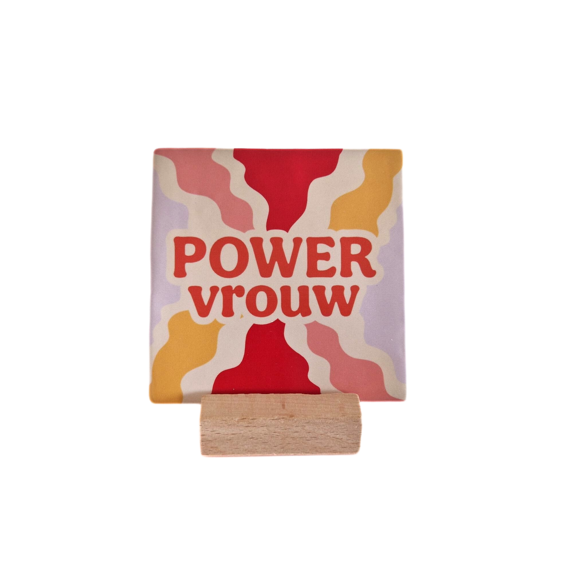Een uniek decoratief item dat impact maakt in iedere ruimte. Zeer geschikt als cadeau voor een echte power vrouw. Iedere tegel wordt geleverd inclusief houten presentatieblok. Leuk om te krijgen, nog leuker om te geven!