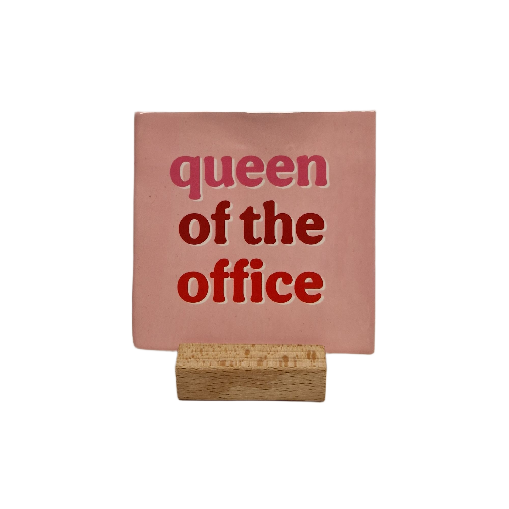 Een uniek decoratief item dat impact maakt in iedere ruimte. Zeer geschikt als cadeau voor een echte office queen. Iedere tegel wordt geleverd inclusief houten presentatieblok. Leuk om te krijgen, nog leuker om te geven!