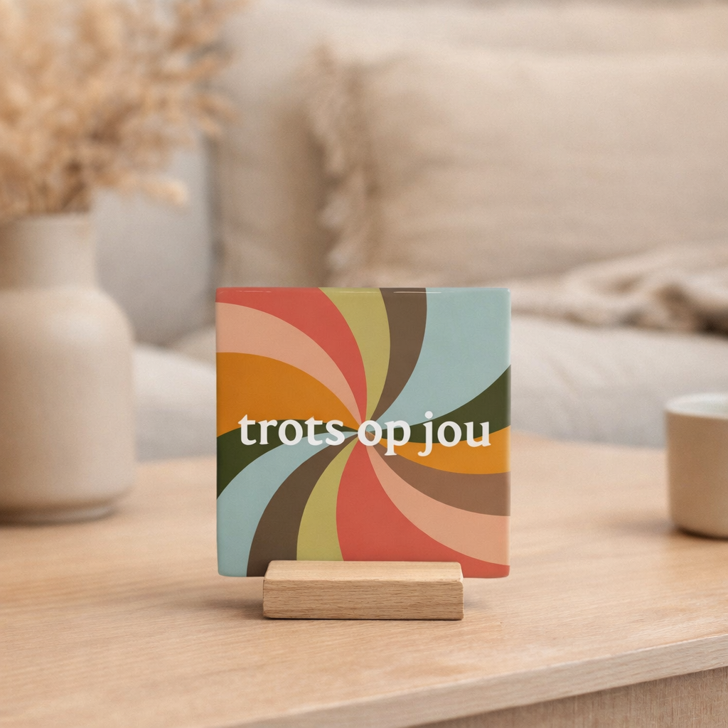 Een uniek decoratief item dat impact maakt in iedere ruimte. Zeer geschikt als cadeau voor diverse gelegenheden. Iedere tegel wordt geleverd inclusief houten presentatieblok. Leuk om te krijgen, nog leuker om te geven!